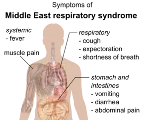 - ↑ Chan JF, Lau SK, To KK, Cheng VC, Woo PC, Yuen KY (April 2015). "Middle East respiratory syndrome coronavirus: another zoonotic betacoronavirus causing SARS-like disease". Clinical Microbiology Reviews. 28 (2): 465–522. doi:10.1128/CMR.00102-14. PMC 4402954. PMID 25810418.