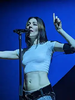 The bare midriff, with flat, toned abs, became the trend in Hollywood in the 2000s.[12] Particularly present were the bare midriffs of Britney Spears, Jennifer Lopez, and Christina Aguilera.[13][14][15][16][17]