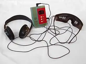 Mind machines typically consist of a control unit, a pair of headphones and/or strobe light goggles. The unit controls the sessions and drives the LEDs in the goggles. Professionally, they are usually referred to as Auditory Visual Stimulation Devices (AVS devices).[11] Some mind machines available today can even connect to the Internet to download additional session material.