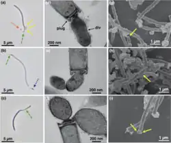 - ↑ Nakajima, Meri; Nakai, Ryosuke; Hirakata, Yuga; Kubota, Kengo; Satoh, Hisashi; Nobu, Masaru K.; Narihiro, Takashi; Kuroda, Kyohei (2025). "Minisyncoccus archaeiphilus gen. nov., sp. nov., a mesophilic, obligate parasitic bacterium and proposal of Minisyncoccaceae fam. nov., Minisyncoccales ord. nov., Minisyncoccia class. nov. and Minisyncoccota phyl. nov. formerly referred to as Candidatus Patescibacteria or candidate phyla radiation". International Journal of Systematic and Evolutionary Microbiology. 75 (2): 006668. doi:10.1099/ijsem.0.006668. ISSN 1466-5034. PMC 12281837.