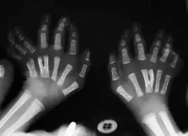 | Hands show Y-shaped right third, left fourth, left fifth metacarpals | |