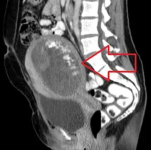 | Molar pregnancy seen on CT scan, sagittal view | |