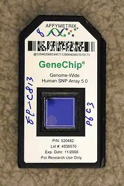 - ↑ Pfundt R, Kwiatkowski K, Roter A, Shukla A, Thorland E, Hockett R, DuPont B, Fung ET, Chaubey A (February 2016). "Clinical performance of the CytoScan Dx Assay in diagnosing developmental delay/intellectual disability". Genetics in Medicine. 18 (2): 168–73. doi:10.1038/gim.2015.51. hdl:2066/167658. PMID 25880438.