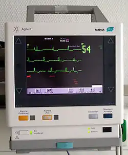 Monitoring of vital parameters can include several of the ones mentioned above, and most commonly include at least blood pressure and heart rate, and preferably also pulse oximetry and respiratory rate. Multimodal monitors that simultaneously measure and display the relevant vital parameters are commonly integrated into the bedside monitors in critical care units, and the anesthetic machines in operating rooms. These allow for continuous monitoring of a patient, with medical staff being continuously informed of the changes in general condition of a patient. Some monitors can even warn of pending fatal cardiac conditions before visible signs are noticeable to clinical staff, such as atrial fibrillation or premature ventricular contraction (PVC).