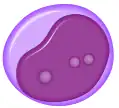 Monoblasts are the committed progenitor cells that differentiated from a committed macrophage or dendritic cell precursor (MDP[1]) in the process of hematopoiesis. They are the first developmental stage in the monocyte series leading to a macrophage.[2] Their myeloid cell fate is induced by the concentration of cytokines they are surrounded by during development. These cytokines induce the activation of transcription factors which push completion of the monoblast's myeloid cell fate. Monoblasts are normally found in bone marrow and do not appear in the normal peripheral blood.[3] They mature into monocytes which, in turn, develop into macrophages.[4] They then are seen as macrophages in the normal peripheral blood and many different tissues of the body. Macrophages can produce a variety of effector molecules that initiate local, systemic inflammatory responses. These monoblast differentiated cells are equipped to fight off foreign invaders using pattern recognition receptors to detect antigen as part of the innate immune response.[1]