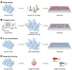 - ↑ Smith K, Garman L, Wrammert J, Zheng NY, Capra JD, Ahmed R, et al. (1 January 2009). "Rapid generation of fully human monoclonal antibodies specific to a vaccinating antigen". Nature Protocols. 4 (3): 372–384. doi:10.1038/nprot.2009.3. PMC 2750034. PMID 19247287.
