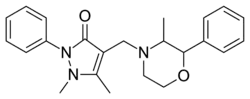 Morazone (Novartrina, Orsimon, Rosimon-Neu, Tarcuzate) is a nonsteroidal anti-inflammatory drug (NSAID), originally developed by the German pharmaceutical company Ravensberg in the 1950s, which is used as an analgesic.[1][2][3] It produces phenmetrazine as a major metabolite and has been reported to have been abused as a recreational drug in the past.[4][5][6][7]