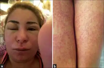 One cause of morbilliform rash is an allergic reaction to transfused blood/blood components. In such a case, the skin lesions would develop within a few hours (Approx. 4hours) of transfusion along with pruritus. The condition may even present with other symptoms, such as conjunctival oedema, oedema in the lips and tongue, and even localised angioedema. On rare occasions, the condition may even escalate to anaphylactic shock where pulmonary restrictions are seen. The associated cause for this is a reaction against an allergen that is seldom identified during testing. Transfusing products with anti-IgA antibodies to IgA-deficient patients has also been a suspected cause for such reactions. Management usually relates to the stoppage of transfusion for around 30minutes, until given antihistamines take effect. Transfusion may even be continued after, if no further progression is seen.