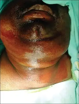 {{cite book}}: CS1 maint: others (link) - ↑ 5.0 5.1 5.2 Bali, Rishi Kumar; Sharma, Parveen; Gaba, Shivani; Kaur, Avneet; Ghanghas, Priya (2015). "A review of complications of odontogenic infections". National Journal of Maxillofacial Surgery. 6 (2): 136–143. doi:10.4103/0975-5950.183867. ISSN 0975-5950. PMC 4922222. PMID 27390486.