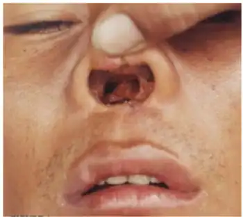 Mucocutaneous leishmaniasis is an especially disturbing form of cutaneous leishmaniasis, because it produces destructive and disfiguring lesions of the face. It is most often caused by Leishmania braziliensis, but cases caused by L. aethiopica have also been described.[1]