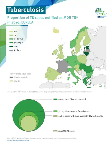 - ↑ "Drug-resistant tuberculosis". World Health Organization. Archived from the original on 5 November 2020. Retrieved 2 October 2018. Archived 5 November 2020 at the Wayback Machine