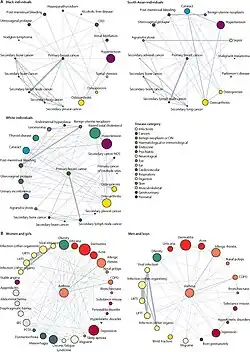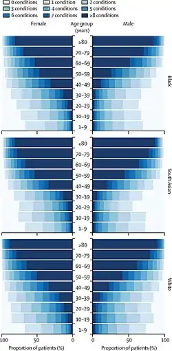 - ↑ Kuan V, Denaxas S, Patalay P, Nitsch D, Mathur R, Gonzalez-Izquierdo A, et al. (January 2023). "Identifying and visualising multimorbidity and comorbidity patterns in patients in the English National Health Service: a population-based study". The Lancet. Digital Health. 5 (1): e16 – e27. doi:10.1016/S2589-7500(22)00187-X. PMID 36460578. S2CID 254129048.
