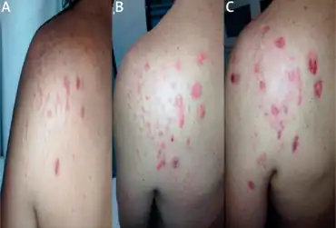 - โ 2.0 2.1 Freedberg, et al. (2003). Fitzpatrick's Dermatology in General Medicine. (6th ed.). Page 1033. McGraw-Hill. ISBN 0-07-138076-0.