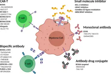 - ↑ Su, Christopher T.; Ye, J. Christine (23 July 2021). "Emerging therapies for relapsed/refractory multiple myeloma: CAR-T and beyond". Journal of Hematology & Oncology. 14 (1): 115. doi:10.1186/s13045-021-01109-y. ISSN 1756-8722.