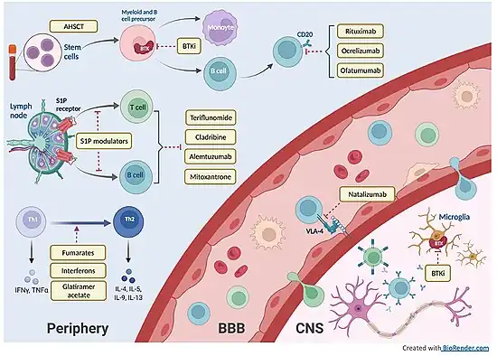 - ↑ Comi G (October 2009). "Treatment of multiple sclerosis: role of natalizumab". Neurological Sciences. 30. 30 (S2): S155-8. doi:10.1007/s10072-009-0147-2. PMID 19882365.