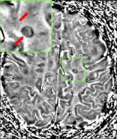 - ↑ Mehta V, Pei W, Yang G, Li S, Swamy E, Boster A, Schmalbrock P, Pitt D (2013). "Iron is a sensitive biomarker for inflammation in multiple sclerosis lesions". PLOS ONE. 8 (3): e57573. Bibcode:2013PLoSO...857573M. doi:10.1371/journal.pone.0057573. PMC 3597727. PMID 23516409.