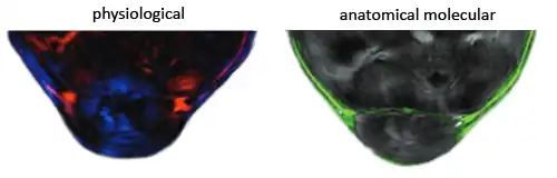 - biological / molecular imaging, which exploits the multi-spectral capability of MSOT. This mode has been used to visualize tissue oxygenation, reporter genes, fluorescent proteins and various exogenous agents (e.g. fluorescent dyes, nanoparticles, target-specific agents) in laboratory animals and humans.