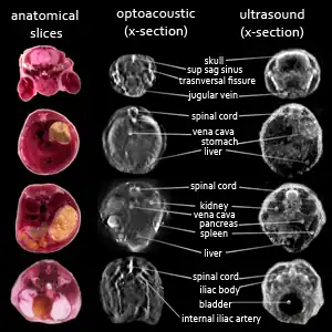 - ↑ A. Buehler, E. Herzog, D. Razansky, V. Ntziachristos, "Video rate optoacoustic tomography of mouse kidney perfusion", Opt. Lett. 35 (2010) 2475-2477.