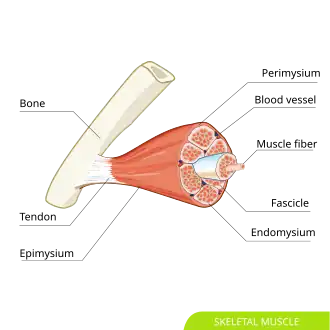 ![]() Structure of a skeletal muscle. (Fascicle labeled at bottom right.) | |