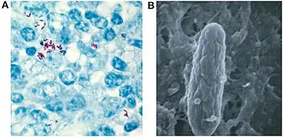 Mycobacterium avium subspecies paratuberculosis (MAP) is an obligate pathogenic bacterium in the genus Mycobacterium.[1] It is often abbreviated M. paratuberculosis or M. avium ssp. paratuberculosis. It is the causative agent of Johne's disease, which affects ruminants such as cattle, and suspected causative agent in human Crohn's disease and rheumatoid arthritis.[2] The type strain is ATCC 19698 (equivalent to CIP 103963 or DSM 44133).[3]