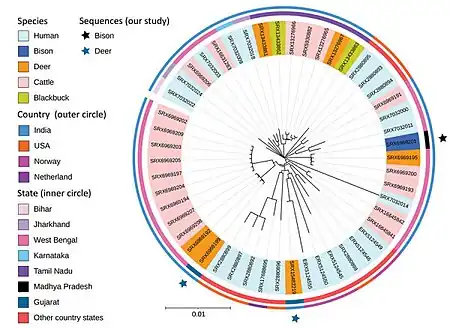 - ↑ David M. Love, Michael M. Garner, Konstantin P. Lyashchenko, Alina Sikar-Gang, Daniel S. Bradway, Suelee Robbe-Austerman, Michele Miller, and Jan Ramer "TUBERCULOSIS CAUSED BY MYCOBACTERIUM ORYGIS IN A GREATER ONE-HORNED RHINOCEROS (RHINOCEROS UNICORNIS): FIRST REPORT IN THE WESTERN HEMISPHERE," Journal of Zoo and Wildlife Medicine 50(4), 1000-1004, (9 January 2020). doi:10.1638/2018-0084