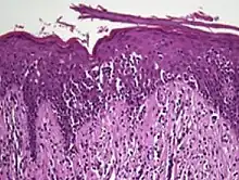 - ↑ Cerroni, L (March 2018). "Mycosis fungoides-clinical and histopathologic features, differential diagnosis, and treatment". Seminars in Cutaneous Medicine and Surgery. 37 (1): 2–10. doi:10.12788/j.sder.2018.002. PMID 29719014.
