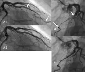 - ↑ Fractional flow reserve with dobutamine challenge and coronary microvascular endothelial dysfunction in symptomatic myocardial bridging. Yoshino et al, 2014. Circulation Journal.