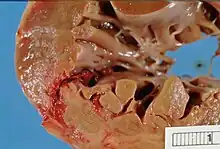- ↑ Becker RC, Gore JM, Lambrew C, Weaver WD, Rubison RM, French WJ, Tiefenbrunn AJ, Bowlby LJ, Rogers WJ (1996). "A composite view of cardiac rupture in the United States National Registry of Myocardial Infarction". J Am Coll Cardiol. 27 (6): 1321–6. doi:10.1016/0735-1097(96)00008-3. PMID 8626938.