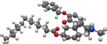 Myrophine is substituted with a 3-benzyl group and a 6-myristyl chain. It is metabolised to form benzylmorphine and then further to morphine, and so is a long-acting prodrug for morphine, but with a slow onset of effects. It is weaker than morphine as an analgesic but longer-lasting in effects, and was thought to have more local anesthetic effect than morphine, though with a somewhat greater tendency to cause reactions like itching and rash. In addiction studies conducted in human subjects in the 1950s, myrophine did not substitute for morphine in withdrawal, did not produce notable morphine-like effects, and did not produce addiction or dependence regardless of dose or how it was administered. Consequently, it was thought to be useful in treating pain in addicts who were being detoxified from other opioid drugs.[2]
