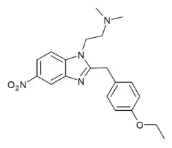 N,N-Dimethyletonitazene is an opioid analgesic drug which has been sold as a designer drug, first detected in Latvia in May 2024.[1] It is far less potent than etonitazene, but still has a potency some 20x that of morphine.