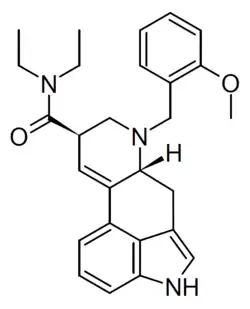 NBOMe-LAD, also known as LSD-NBOMe, is a serotonin receptor modulator and putative psychedelic drug of the lysergamide family related to lysergic acid diethylamide (LSD).[1] It is the N-(2-methoxybenzyl) (NBOMe) derivative of LSD.[1]