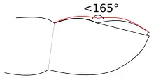 • Mild clubbing - Loss of the normal <165° angle (Lovibond angle) between the nailbed and the fold (cuticula). Schamroth's window (see below) is obliterated. Clubbing is not obvious at a glance.
