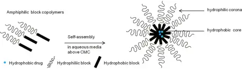 Drug-loaded polymeric micelle formed from self-assembly of amphiphilic block copolymers in aqueous media.