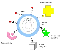 - ↑ Berry, Catherine C; Curtis, Adam S G (7 July 2003). "Functionalisation of magnetic nanoparticles for applications in biomedicine". Journal of Physics D: Applied Physics. 36 (13): R198 – R206. Bibcode:2003JPhD...36R.198B. doi:10.1088/0022-3727/36/13/203. S2CID 16125089.