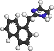 Naphazoline, sold under many brand names, is a medication used to treat a stuffy nose or eye redness due to minor irritation.[1] It is available as a nasal spray or eye drops.[1]