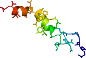 Orexin, otherwise known as hypocretin, is a neuropeptide that acts within the brain to regulate appetite and wakefulness as well as a number of other cognitive and physiological processes.[13][24][25] While there are billions of cells in the human brain, only 10,000–20,000 neurons secrete orexin peptides;[4] all of these neurons project out of the lateral hypothalamus.[13] Loss of these orexin-producing neurons causes narcolepsy and most individuals with narcolepsy have a reduced number of these neurons in their brains.[13][14][17]