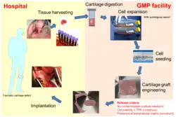 - 1 2 Fulco I, Miot S, Haug MD, Barbero A, Wixmerten A, Feliciano S, et al. (July 2014). "Engineered autologous cartilage tissue for nasal reconstruction after tumour resection: an observational first-in-human trial". Lancet. 384 (9940): 337–346. doi:10.1016/S0140-6736(14)60544-4. PMID 24726477. S2CID 12217253.