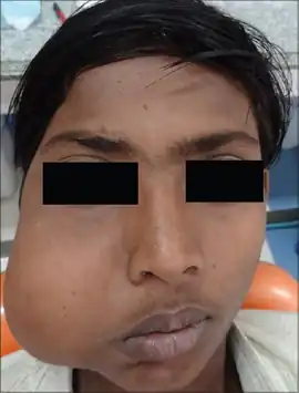 - Facial dysmorphism (when locally invasive)