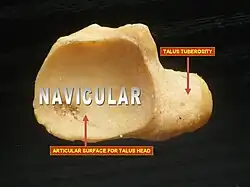 ![]() Bones of the human foot, with navicularis labeled at upper left in image. | |