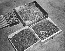 The collection of gold dental fillings, dental caps and dentures extracted from the mouths of the victims of Aktion T4 and the Nazi concentration camps was a feature of the Holocaust. The practice originated with a 1940 order from Heinrich Himmler, and reinforced by a second order in 1942.[1] The collection was done with the active and voluntary cooperation of German dentists.[2] Dentists involved in the collection of gold included Martin Hellinger.[3]