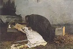 In the ancient world, sailors returning corpses to their home country were often accused of necrophilia.[8] Singular accounts of necrophilia in history are sporadic, though written records suggest the practice was present within Ancient Egypt. Herodotus writes in The Histories that, to discourage intercourse with a corpse, ancient Egyptians left deceased beautiful women to decay for "three or four days" before giving them to the embalmers.[9][10][11] Herodotus also alluded to suggestions that the Greek tyrant Periander had defiled the corpse of his wife, employing a metaphor: "Periander baked his bread in a cold oven."[12] Acts of necrophilia are depicted on ceramics from the Moche culture, which reigned in northern Peru from the first to eighth-century CE.[13] A common theme in these artifacts is the masturbation of a male skeleton by a living woman.[14] Hittite law from the 16th century BC through to the 13th century BC explicitly permitted sex with the dead.[15] In what is now Northeast China, the ethnic Xianbei emperor Murong Xi (385–407) of the Later Yan state had intercourse with the corpse of his beloved empress Fu Xunying after the latter was already cold and put into the coffin.[16]
