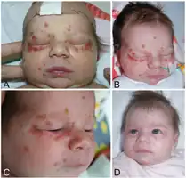 The infants have no skin lesions at birth, but sometimes develop them during the first weeks of life.[2] Neonatal lupus is usually benign and self-limited.[1]