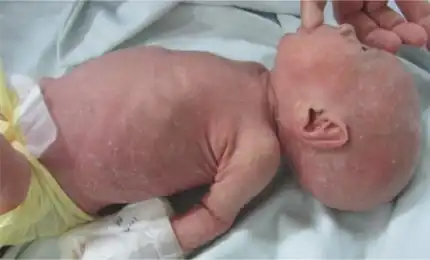 Netherton syndrome is characterized by chronic skin inflammation, universal pruritus (itch), severe dehydration, and stunted growth. Patients with this disorder tend to have a hair shaft defect (trichorrhexis invaginata), also known as "bamboo hair". The disrupted skin barrier function in affected individuals also presents a high susceptibility to infection and allergy, leading to the development of scaly, reddish skin similar to atopic dermatitis.[6] In severe cases, these atopic manifestations persist throughout the individual's life, and consequently post-natal mortality rates are high. In less severe cases, this develops into the milder ichthyosis linearis circumflexa.[3]