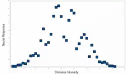 A typical population code involves neurons with a Gaussian tuning curve whose means vary linearly with the stimulus intensity, meaning that the neuron responds most strongly (in terms of spikes per second) to a stimulus near the mean. The actual intensity could be recovered as the stimulus level corresponding to the mean of the neuron with the greatest response. However, the noise inherent in neural responses means that a maximum likelihood estimation function is more accurate.