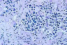 - ↑ Peuchmaur M, d'Amore ES, Joshi VV, Hata J, Roald B, Dehner LP, et al. (November 2003). "Revision of the International Neuroblastoma Pathology Classification: confirmation of favorable and unfavorable prognostic subsets in ganglioneuroblastoma, nodular". Cancer. 98 (10): 2274–81. doi:10.1002/cncr.11773. PMID 14601099. Archived from the original on 2021-08-28. Retrieved 2019-11-18. Archived 2021-08-28 at the Wayback Machine