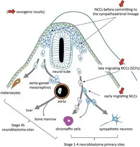 - ↑ Tsubota, Shoma; Kadomatsu, Kenji (July 2017). "Origin and mechanism of neuroblastoma". Oncoscience. 4 (7–8): 70–72. doi:10.18632/oncoscience.360. ISSN 2331-4737.