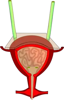 Neurogenic bladder refers to urinary bladder problems due to dysfunction of the nervous system.[1] Symptoms can include an overactive bladder with the sudden need to pee, frequency urination, and leakage of urine following a strong urge to pee; spontaneous leakage of urine; and inability to pass urine.[1] Complications may include urinary tract infections, incontinence, kidney stones, and vesicoureteral reflux.[2]
