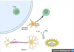 Aging is often associated with cognitive impairment and increased propensity for developing neurodegenerative diseases, such as Alzheimer's disease.[21] Elevated inflammatory markers seemed to accelerate the brain aging process[22] In the aged brain alone, without any evident disease, there are chronically increased levels of pro-inflammatory cytokines and reduced levels of anti-inflammatory cytokines. The homeostatic imbalance between anti-inflammatory and pro-inflammatory cytokines in aging is one factor that increases the risk for neurodegenerative disease. Additionally, there is an increased number of activated microglia in aged brains, which have increased expression of major histocompatibility complex II (MHC II), ionized calcium binding adaptor-1 (IBA1), CD86, ED1 macrophage antigen, CD4, and leukocyte common antigen.[23] These activated microglia decrease the ability for neurons to undergo long term potentiation (LTP) in the hippocampus and thereby reduce the ability to form memories.[24]
