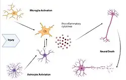 - ↑ Xiong, Ye; Mahmood, Asim; Chopp, Michael (June 2018). "Current understanding of neuroinflammation after traumatic brain injury and cell-based therapeutic opportunities". Chinese Journal of Traumatology. 21 (3): 137–151. doi:10.1016/j.cjtee.2018.02.003. ISSN 1008-1275. PMC 6034172. PMID 29764704.