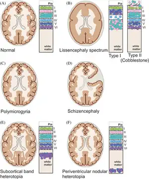 - ↑ Agamanolis, Dimitri (January 2014). "MALFORMATIONS OF CORTICAL DEVELOPMENT AND NEURONAL MIGRATION DEFECTS". Neuropathology-Web.org. NEOMED. Archived from the original on 19 February 2014. Retrieved 3 Feb 2014. Archived 19 February 2014 at the Wayback Machine